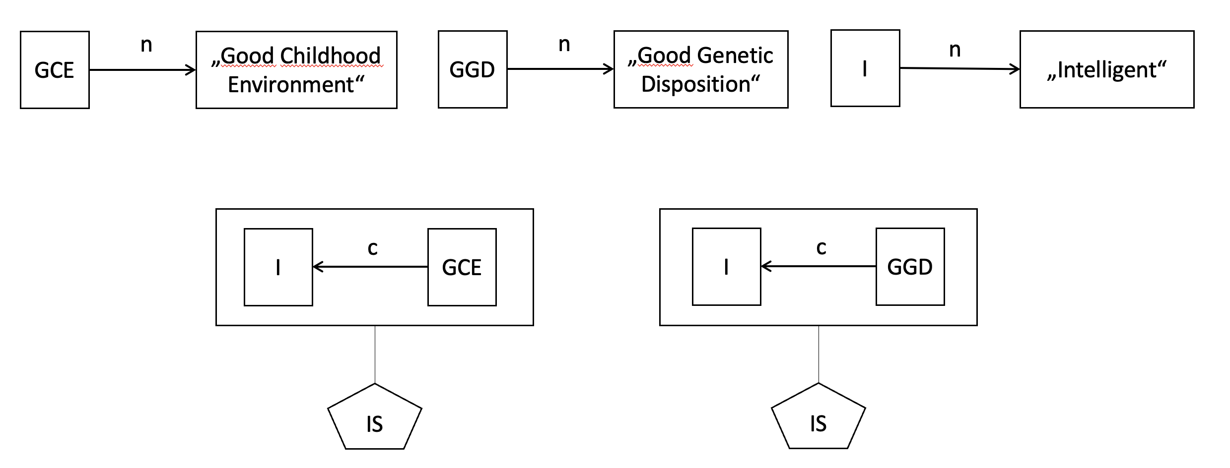 c 0arrow expresses the idea that there is no other causal influence on “Intelligence” apart from the ones that were specified (CGE or GGD).